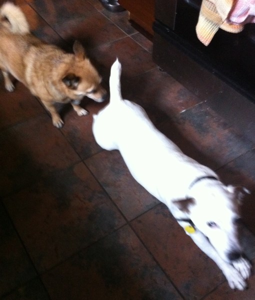And speaking of displaced, now that the dog has no where plush to piss in the house, she goes outside. Guess what? SHE HAD BLADDER CONTROL ALL THIS TIME! At first she was afraid of the new floor, and hid under the bed, but now she paces on it at night: click, click, clickity, click….click…click, tap and scratch with her claws on her frito-smelling feet. There’s always something. Like a couple of nights ago there was banging in the kitchen. If it’s the mice (yes, mice, old timey houses have lots of rodents, learn to love them), why is Betty not barking? One of them died a couple of weeks ago with its ass and tail hanging out from under the fridge, impaled by a raw piece of spaghetti and Betty completely ignored it. What good is a dog, who is smaller than most cats, if she can’t catch or deter mice from raiding my kitchen? So I got up and turned on the light and could see the garbage lid going up and down all by itself. Relax, there are no ghosts, it’s one of those motion sensor lids that probably got out of whack, like every other appliance in the house. When I got up close, though, the lid and the entire garbage can was crawling with hundreds of MAGGOTS! There is nothing worse than a triple shot of horror driven adrenaline in the wee morning hours. I screamed and hollered and Evangeline and I bagged the entire bin up in plastic while we hopped around, trying not to step on any of the bugs. I cannot handle maggots, epecially a zillion of them crawling wildly (note to self: do not die at home alone). This is not the first time I’ve hosted a maggot-palooza, so I’ve been careful but I think I put one of those juiced up paper wrappers from the butcher in the clean garbage instead of the sealed green bin. My bad. Super gross, and now the house is full of flies, the noisy, boisterous kind that buzz near the windows. I give up. Party on, creatures, just keep it to a dull roar.